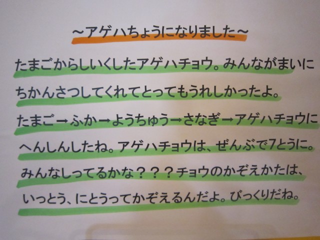アゲハ蝶に変身する日を心待ちにしている子どもたちです。